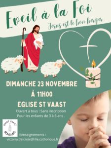 Eveil à la foi, dimanche 23 novembre 2025 à 11H en l’église St Vaast de Bondues