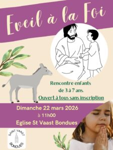 Eveil à la foi, dimanche 22 mars 2026 à 11H en l’église St Vaast de Bondues