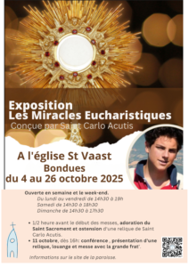 du 4 au 26 octobre en l’église saint Vaast Exposition des miracles eucharistiques conçue par le saint Carlo ACUTIS